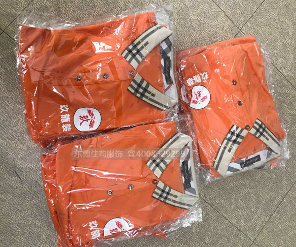 玖龍裝飾的吳總是通過老客戶介紹認識的,因為是做裝飾行業(yè),所以對夏季工作服的要求,是吸汗透氣,而且形象亮眼,給人一種時尚低調(diào)有內(nèi)涵的感覺。吳總選中了一款橙色T恤衫,非常感謝吳總的理解,雖然延遲了交貨日期,但還是非常順利交貨了。