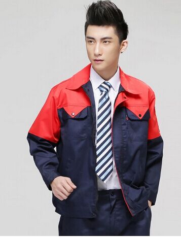 JL-QD253東莞工作服以藏藍色為主色,胸前衣兜采用紅色撞色拼接,走線細致,實用性強。左中腰間口袋均采用雙層設計,傾斜線條,穩重大氣 走線細致,精細袖口,精致筆袋,松緊式下擺。
