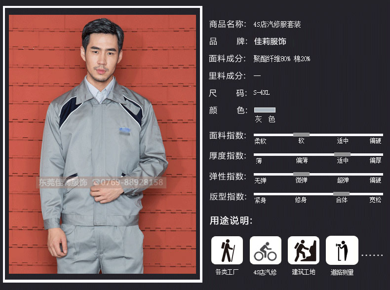 福特美容汽修服 長袖工作服套裝 JL-QX006