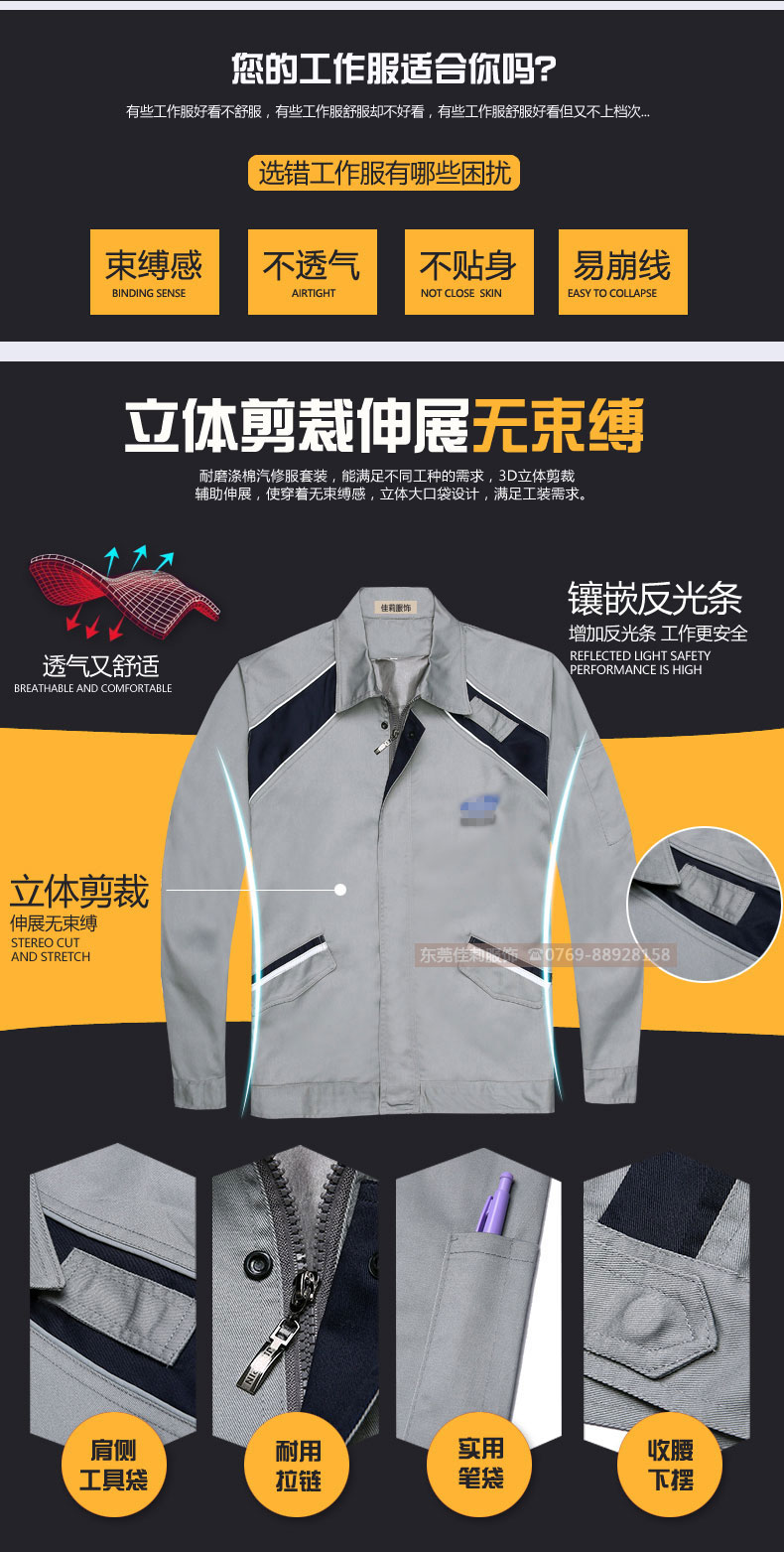 好的工作服直接反映您的企業(yè)形象!滿足80、90后對時(shí)尚 的渴望,拋棄傳統(tǒng)工作服呆板,僵化。我們只做最好的工作服!