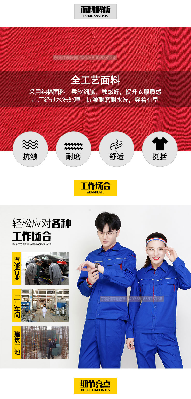 純棉工作服定做 夏裝長袖 JL-GC008