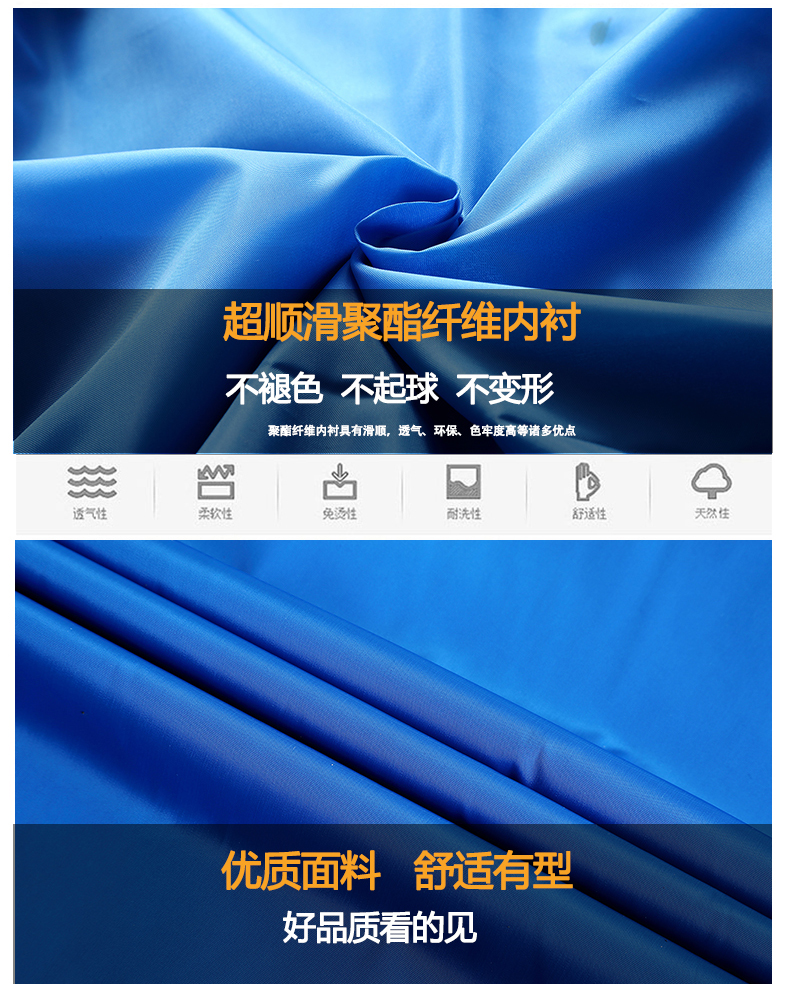 采用超順滑聚酯纖維內(nèi)襯,不起球,不褪色,不變形。防靜電內(nèi)襯,為冬天起到更實用的穿著