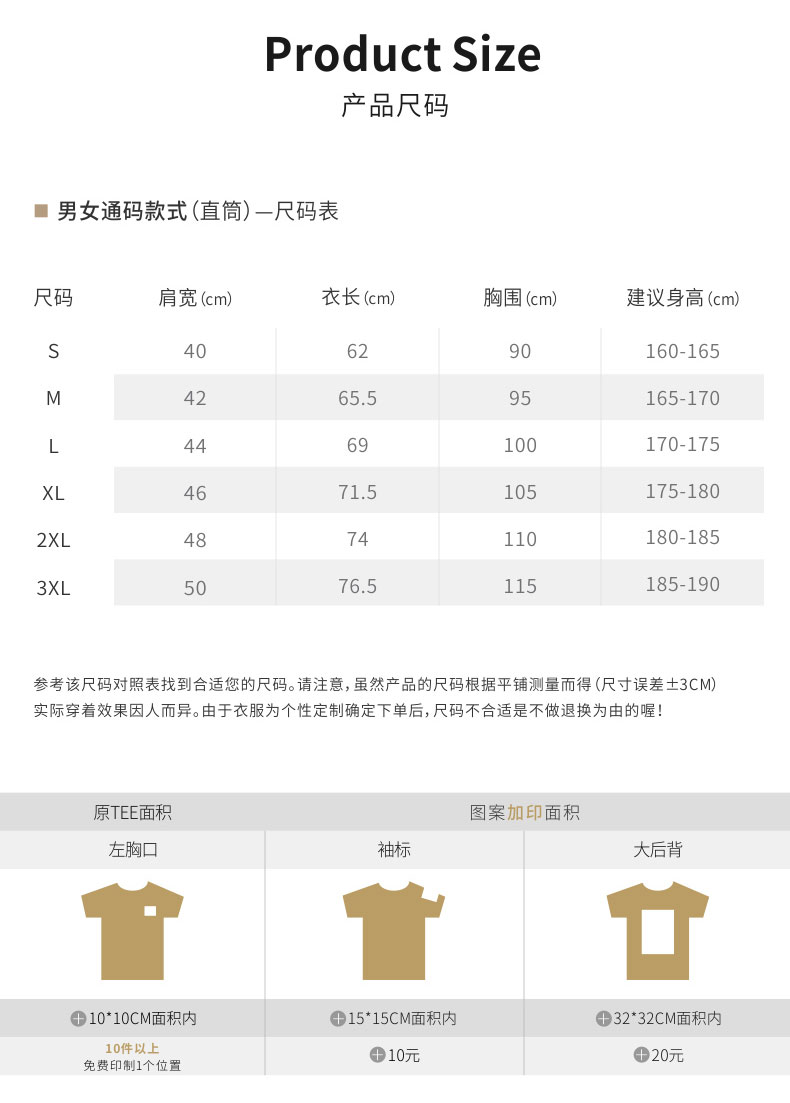 160(S)、165(M)、170(L)、175(XL)、180(2XL)、185(3XL)、190(4XL)